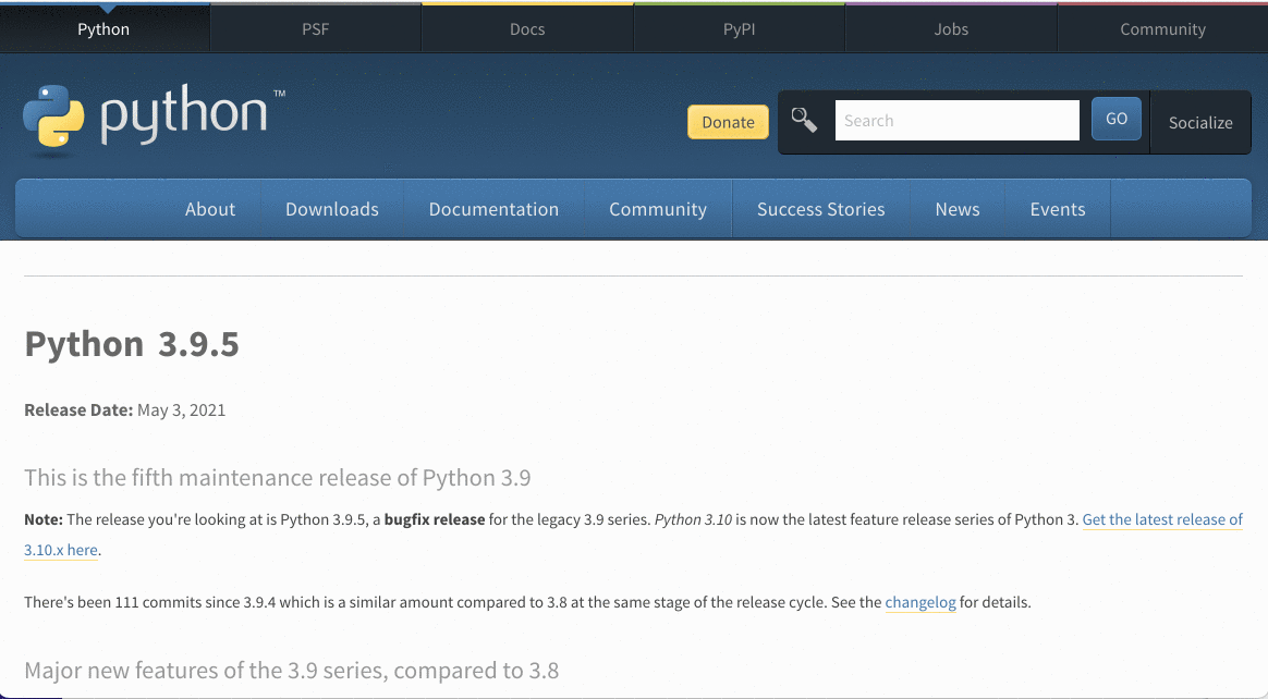 Note: We’ll be using Python version 3.9.5 for this tutorial. I selected this as it was the latest version available when I wrote it. The tutorial will work fine with Python 3.10, just note that some references might be different. Technology evolves very fast!