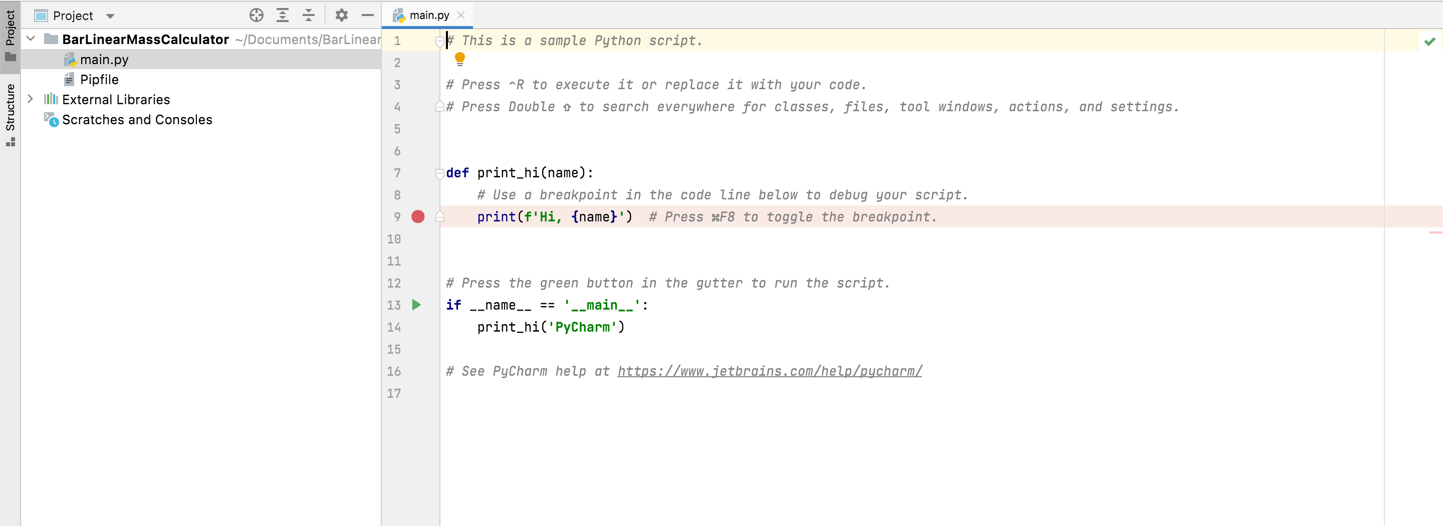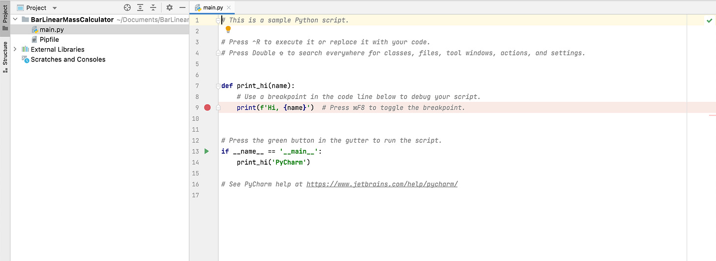 file. To run the program, click the green play button in the toolbar, as shown below.